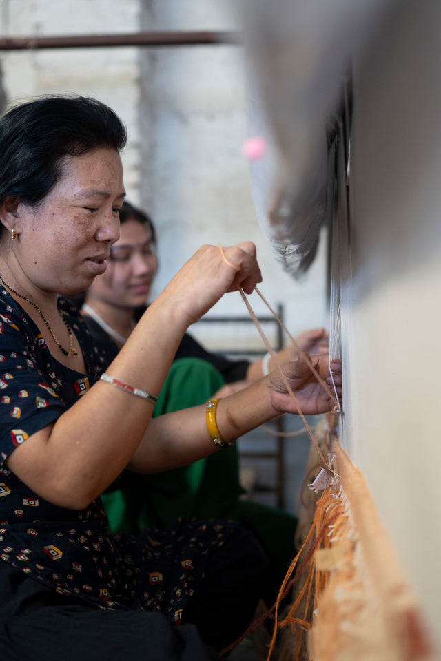 OUR COLOR FUSION TECHNIQUE BLENDS INDIVIDUAL THREADS OPTICALLY INTO COHESIVE TONES, CREATING VISUAL DEPTH THAT CHANGES AS YOU MOVE AROUND THE PIECE.